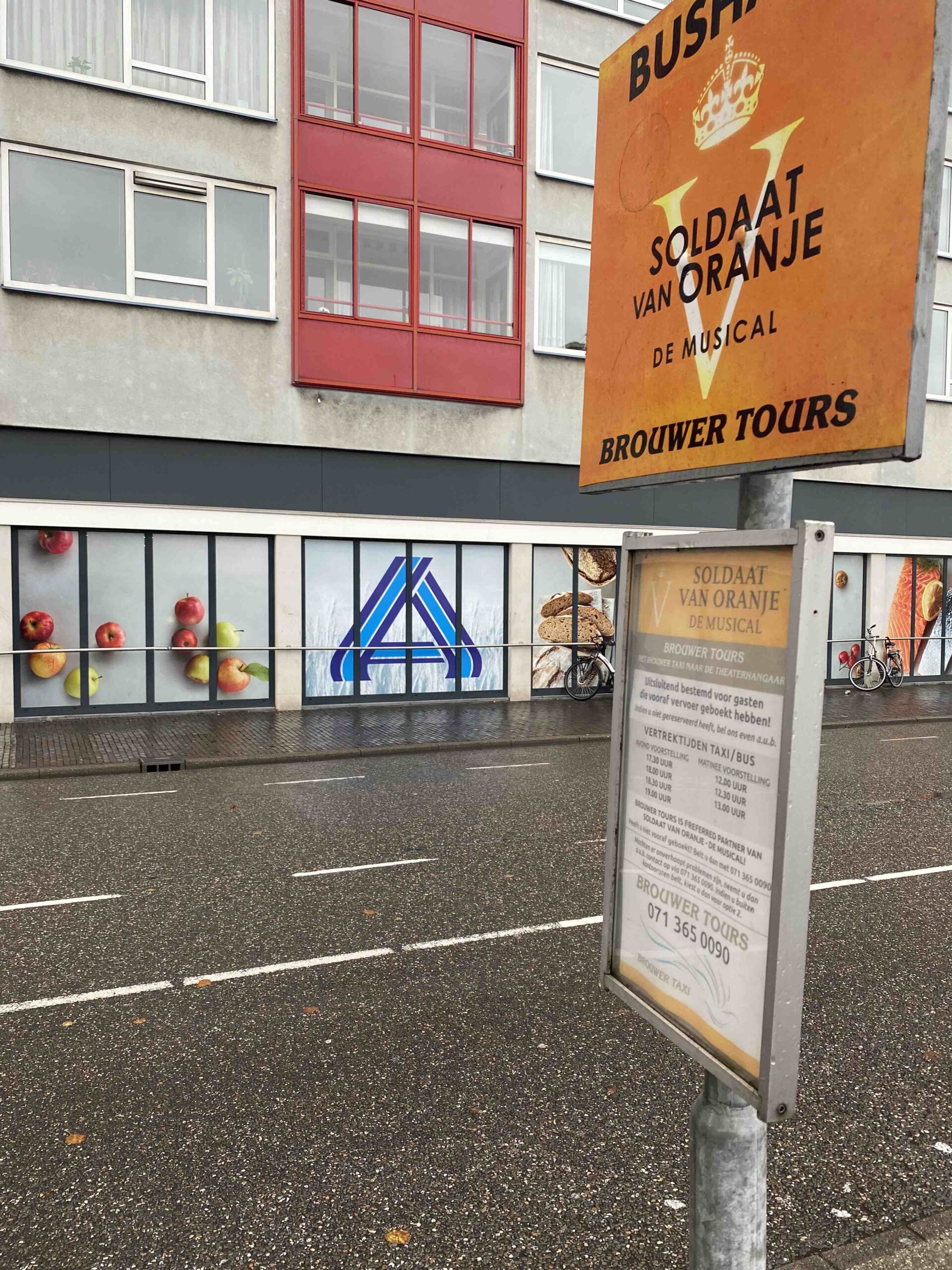 Hier ziet u een afbeelding van de halte. De bus kan een algemene vervoersbus zijn of de Soldaat van Oranje – De Musical bus of een kleinere taxibus. De vertrektijden vanaf Leiden CS zijn te selecteren via de website van Brouwer Tours.